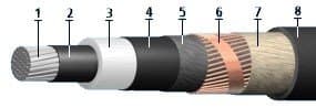 Поверх оболочки наложена броня в виде оплетки из круглых стальных оцинкованных проволок диаметром 0,3 мм.